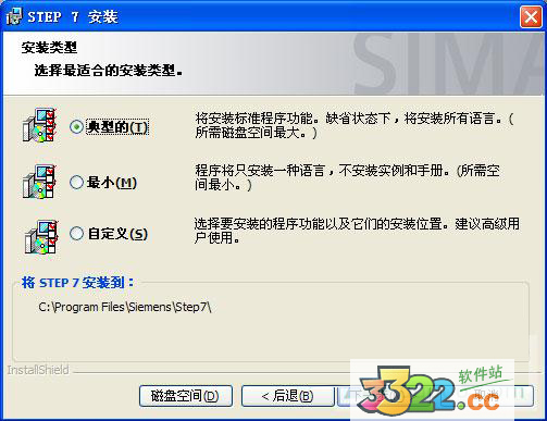 1.典型:將安裝標(biāo)準(zhǔn)程序功能,建議勾選,不過所需磁盤空間最大