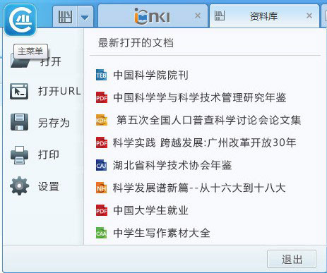 啟動程序后,可點軟件左上角圖標(biāo)打開菜單欄,點擊“打開”按鈕,開始瀏覽或者說是閱讀該文檔,這個文檔必須是以下后綴名的文件類型CAJ、PDF、KDH、NH、CAA、TEB;并且可以再次對文檔進行另存、打印等操作。