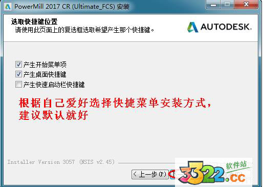 4、選取快捷位置,可選1)產(chǎn)生開始菜單項(xiàng)、2)產(chǎn)生桌面快捷鍵、3)產(chǎn)生快速啟動欄快捷鍵,建議全部勾選并點(diǎn)擊下一步