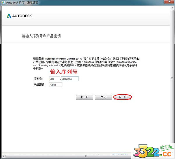 4、提示要輸入序列號的話,請輸入666-69696969(在安裝說明里面),然后下一步