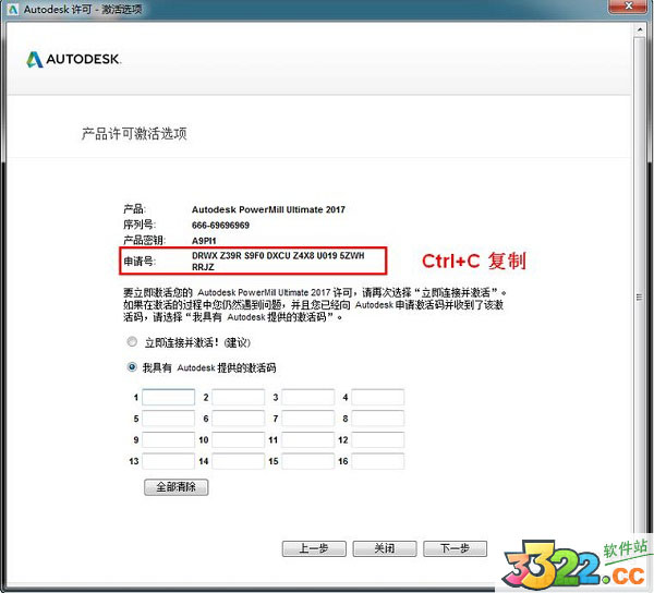 5、進(jìn)入產(chǎn)品許可激活選項(xiàng),復(fù)制申請?zhí)?br />