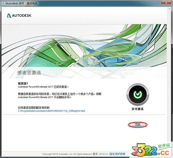 9、激活成功,現(xiàn)在用戶可完全免費(fèi)的使用PowerMill2017