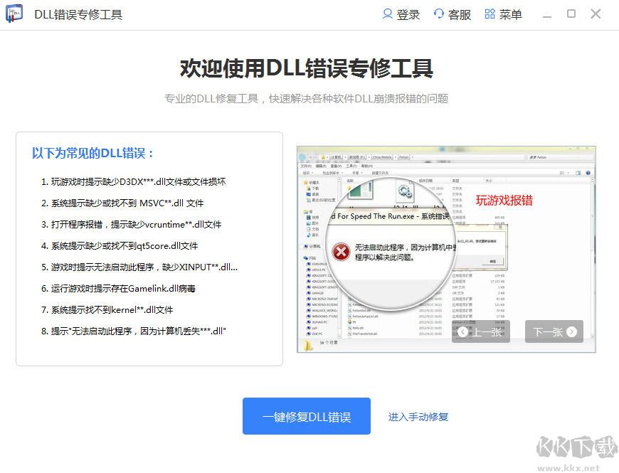 2.選擇一鍵修復(fù)DLL錯(cuò)誤或者進(jìn)入手動(dòng)修復(fù)