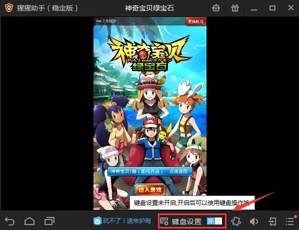 1、使用猩猩助手打開游戲后,點擊模擬器下方的【鍵盤設置】。