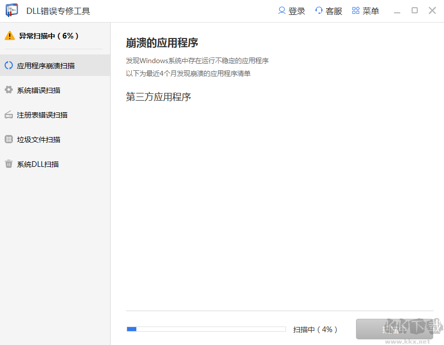 《DLL修復(fù)軟件》是一款專業(yè)的DLL文件錯(cuò)誤修復(fù)工具,為用戶提供專業(yè)快速的DLL修復(fù)功能。支持一鍵掃描系統(tǒng)全部DLL文件錯(cuò)誤,并批量修復(fù),讓系統(tǒng)運(yùn)行穩(wěn)定正常,有需要的朋友不要錯(cuò)過,KK下載站推薦大家下載體驗(yàn)!