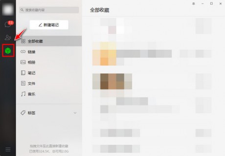 微信2.0 for Windows版本新增收藏功能,登錄Windows微信后->點(diǎn)擊微信左側(cè)“收藏”功能鍵。點(diǎn)擊收藏內(nèi)容隨時(shí)看,也可以創(chuàng)建筆記,和手機(jī)端收藏相互同步。