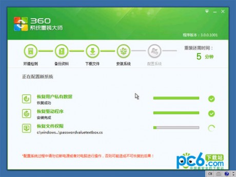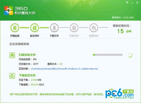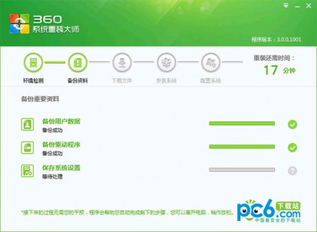 選擇純凈式重裝或者在保留式重裝中選擇完要備份的資料后,點擊下一步,重裝過程正式開始。