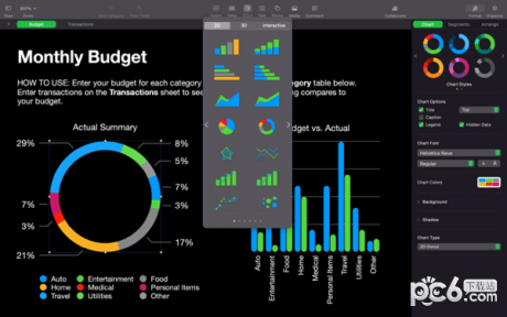 1. 多樣的圖表模板:Numbers for Mac提供了多種圖表模板,您可以根據(jù)不同的需要選擇圖表類型進(jìn)行數(shù)據(jù)可視化。