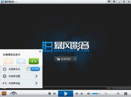 暴風(fēng)環(huán)繞聲使用了HRTF技術(shù),開啟暴風(fēng)環(huán)繞聲功能,增強(qiáng)了聲音的縱深感、臨場(chǎng)感和空間感,使您不僅能夠感受來(lái)自前、后、左、右的聲源發(fā)出的聲音,而且感受到自己周圍的整個(gè)空間,都被這些聲源所產(chǎn)生的空間聲場(chǎng)所包圍,從而營(yíng)造出一種置身于歌廳、影劇院的音響效果。