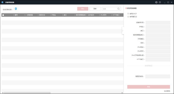 SADP中文版軟件,是一款海康威視開發(fā)的用來搜索在線設(shè)備的軟件,它可以幫助用戶一鍵搜索局域網(wǎng)中所有在線設(shè)備,并且顯示設(shè)備信息,IP地址等等,SADP 也可以用于修改設(shè)備的網(wǎng)絡(luò)參數(shù)和恢復(fù)設(shè)備的缺省密碼。通過網(wǎng)絡(luò)搜索軟件所在網(wǎng)段內(nèi)的在線設(shè)備。修改設(shè)備的網(wǎng)絡(luò)參數(shù):包括IP 地址、端口、子網(wǎng)掩碼、網(wǎng)關(guān)等。