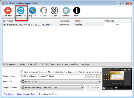 3、在只讀模式下安全地修復(fù)損壞的視頻文件