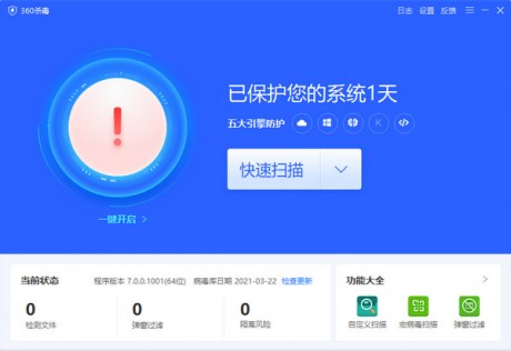 7.0 全新改版,防護(hù)效果更清晰,一鍵查殺更快捷