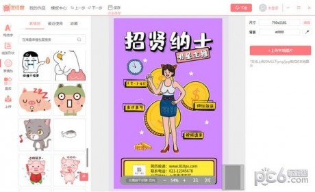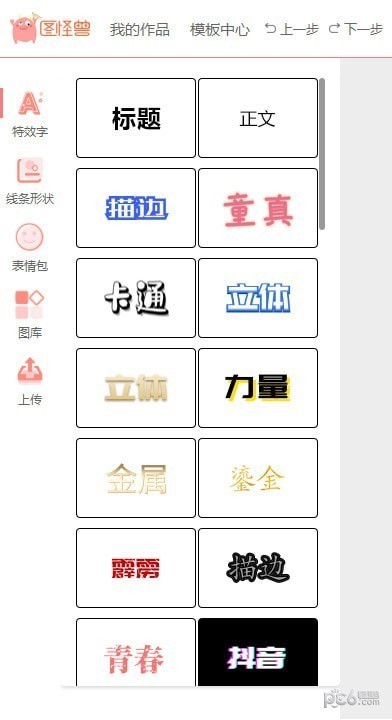文字更換完畢后又可以在左側(cè)增加特效字、線條形狀和表情包等操作;如果自己有本地的圖片也可以通過(guò)上傳來(lái)對(duì)圖片進(jìn)行相對(duì)應(yīng)的設(shè)計(jì);