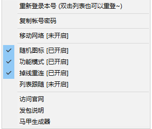 穩(wěn)定掛機,重新登錄某號,自動識別驗證碼,改名/簽名/性別,PC或多種在線圖標(右擊列表彈出菜單)