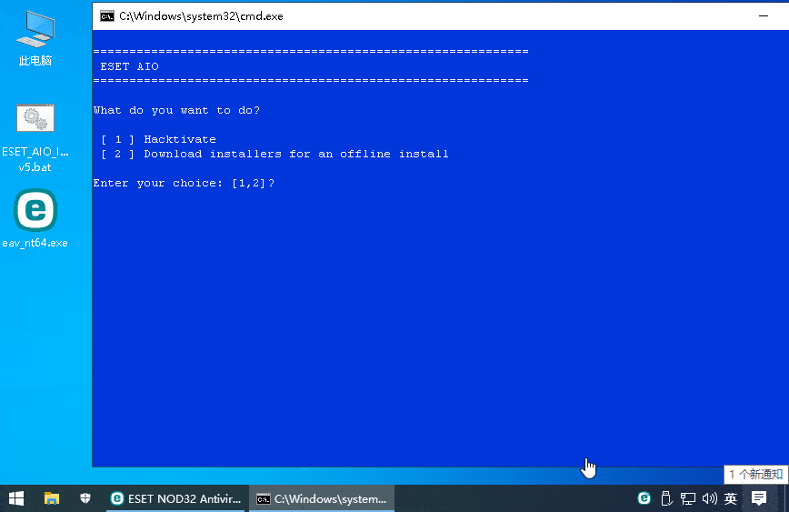 * 安裝ESET產(chǎn)品,運行激活腳本,輸入[1] Hacktivate,稍等片刻