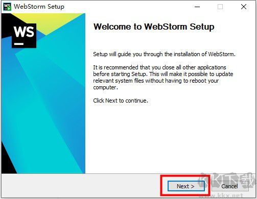 2、雙擊“WebStorm-211.4961.31.exe”開始安裝軟件,點擊next;