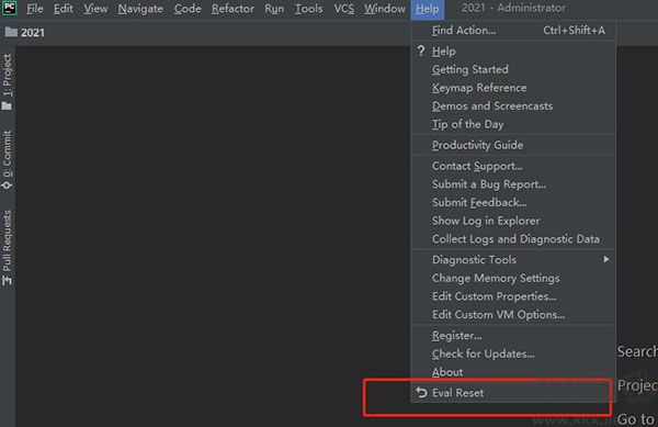 11、重啟完成并進(jìn)入主界面,點擊菜單【Help】->【Eval Reset】;