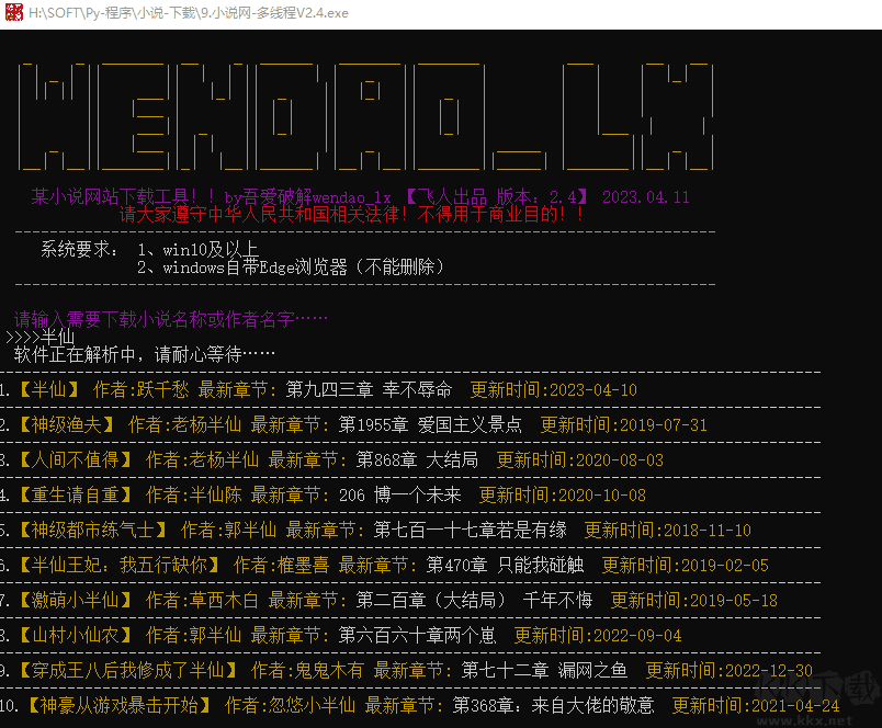 某小說網(wǎng)站下載工具 V3.0版本,支持?jǐn)帱c(diǎn),多線程,自動(dòng)更新驅(qū)動(dòng)!