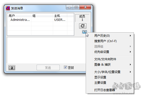 飛鴿傳書(IP Messenger 官方名稱為 IP 信使)是一款小巧、極速、免費和開放源代碼的多平臺彈出式局域網(wǎng)即時通信軟件,基于 TCP/IP(UDP) 協(xié)議,無需服務(wù)器。支持文件/文件夾傳輸,支持捕獲指定區(qū)域的圖像,支持在消息中嵌入圖像,支持 RSA2048/AES256/SHA1 加密/標(biāo)志消息數(shù)據(jù),支持 RSA/Blofish 消息數(shù)據(jù)加密,支持 PKCS#1-v1_5 簽名/驗證。