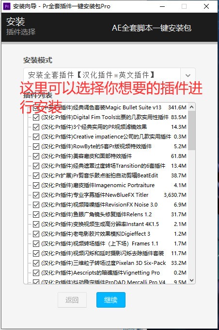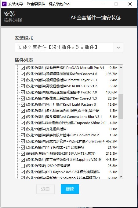 3、此時會在顯示Pr全套插件一鍵安裝包中包含的所有插件,在其中選擇想要的插件進行安裝。