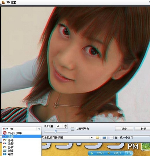 該媒體轉(zhuǎn)換器套件為3D電影創(chuàng)作提供了6種不同的3D效果。紅/青、紅/綠、紅/藍、藍/黃、交錯和排列。同時,輸出3D電影的3D深度可以從-50到+50調(diào)整,以獲得更生動的3D效果。