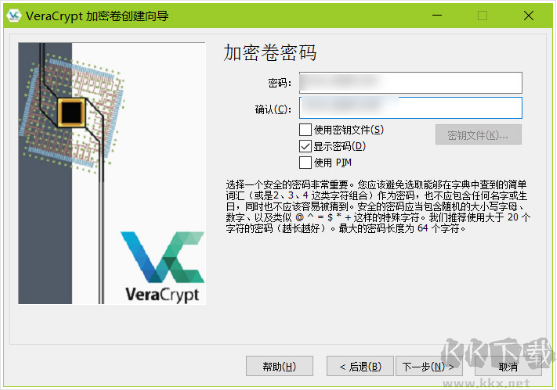 7.填寫加密卷的密碼(也可以使用密鑰文件),然后點(diǎn)下一步;