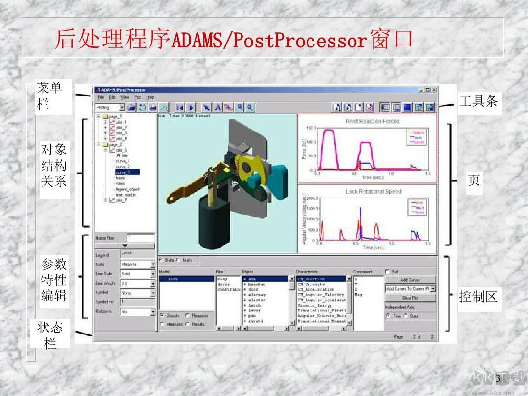 Adams 軟件還包含一套強(qiáng)大的仿真分析工具。它可以進(jìn)行靜態(tài)和動態(tài)分析、正向和反向動力學(xué)分析、頻域分析和最優(yōu)化等。用戶可以通過仿真預(yù)測系統(tǒng)的響應(yīng)、評估系統(tǒng)的性能、優(yōu)化系統(tǒng)設(shè)計,并進(jìn)行故障診斷和可靠性分析。此外,Adams 還支持多種仿真結(jié)果的可視化,包括軌跡、力和力矩曲線、動畫等,以幫助用戶更好地理解和解釋仿真結(jié)果。