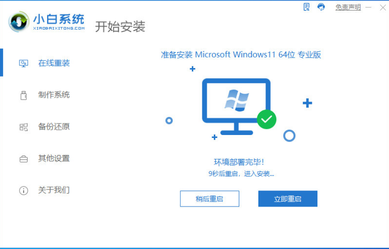 1、先下載運(yùn)行小白系統(tǒng),然后等待環(huán)境部署完成,一鍵式操作無(wú)需電腦基礎(chǔ)知識(shí),簡(jiǎn)單操作即可一鍵重裝系統(tǒng)。