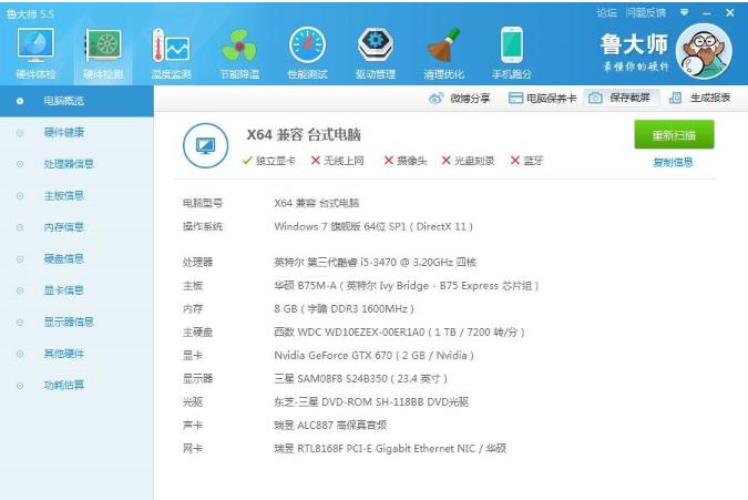 魯大師是一款專業(yè)的硬件檢測、評測軟件,不管你是懂電腦還是不懂電腦,都可以使用魯大師來檢測你的電腦硬件信息,準(zhǔn)確性非常高,是我們常用的看電腦配置,硬件真?zhèn)伪鎰e軟件,購買電腦檢測必備的一款工具。新版的魯大師更是提供了硬件檢測、穩(wěn)定監(jiān)控,性能測試、驅(qū)動檢測,清理優(yōu)化,裝機必備,游戲庫等眾多實用功能。