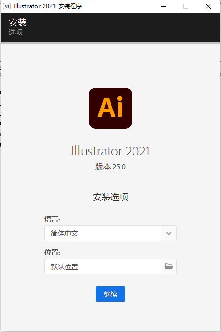 4、雙擊“Set-up.exe”,選擇簡體中文語言,自定義安裝目錄安裝ai2021;
