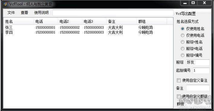VCF文件轉(zhuǎn)換器vcftool是一款可以把Excel格式轉(zhuǎn)換為VCF或是把VCF轉(zhuǎn)換為EXCEL、TXT文件的一款工具,VCF為通訊錄格式文件,有時比較亂我們又不能在手機上一個一個改,非常麻煩,大家可以放在電腦上使用這款工具來進(jìn)行修改,然后保存導(dǎo)回到手機就可以了。本工具已經(jīng)測試,轉(zhuǎn)換出的Vcf可正常導(dǎo)入手機,群組、備注都正常。