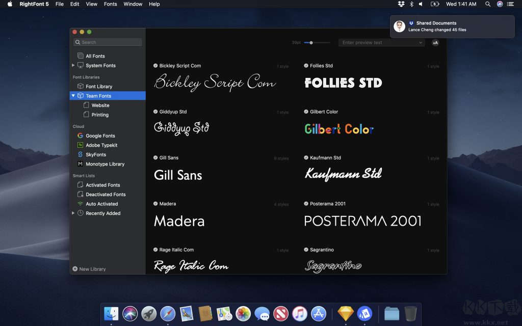團(tuán)隊(duì)協(xié)作與共享:RightFont還支持團(tuán)隊(duì)協(xié)作和字體庫(kù)共享,用戶可以與團(tuán)隊(duì)成員共享字體資源,提高團(tuán)隊(duì)的工作效率和一致性。