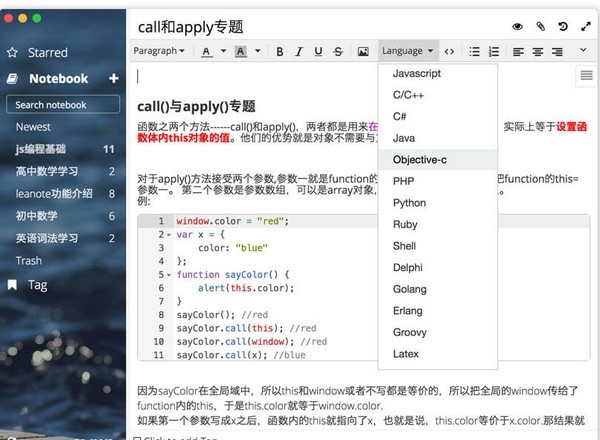 涵蓋所有主流語(yǔ)言的代碼都很亮,想在Leanote上寫代碼,記住知識(shí)。
