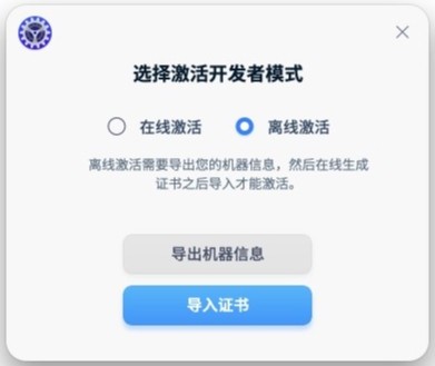 若選擇離線模式,根據提示下載證書,系統(tǒng)導入證書后,即進入開發(fā)者模式。