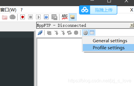 2、在NppFTP window的工具欄中點(diǎn)擊配置按鈕,選擇“Profile Settings”來配置遠(yuǎn)程服務(wù)器。