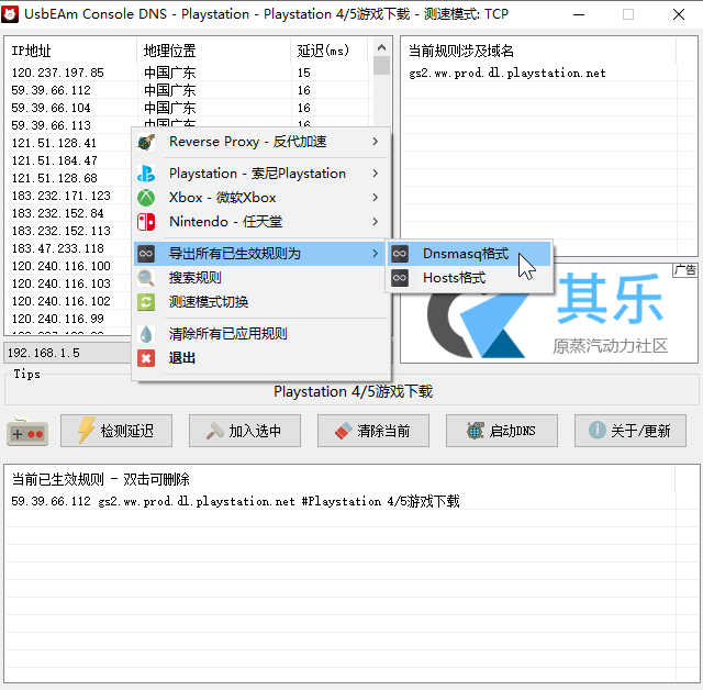 6. 在導(dǎo)出規(guī)則的選項(xiàng)中,選擇Dnsmasq格式,并進(jìn)行導(dǎo)出操作即可。