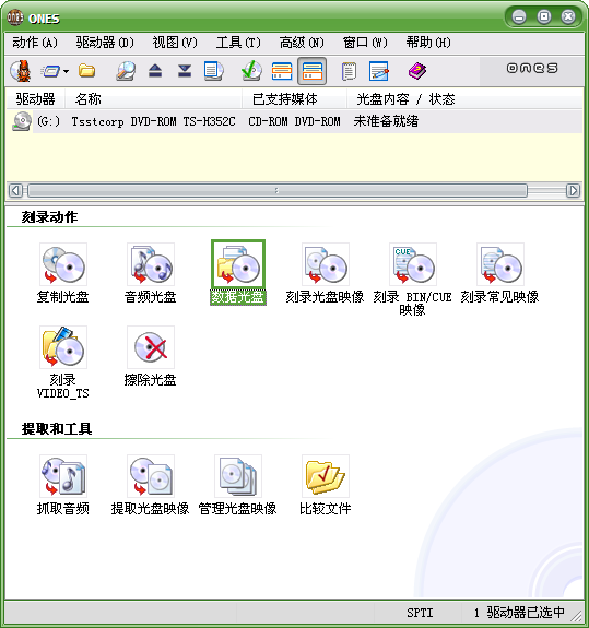 ONES光盤刻錄軟件,綠色無毒,裝在U盤里隨時隨地都能用,包含了非常多的光盤刻錄功能,光盤擦除、光盤復(fù)制、抓去音頻、管理iso映像、比較光盤文件等,支持創(chuàng)建音樂光盤、數(shù)據(jù)光盤和啟動光盤。