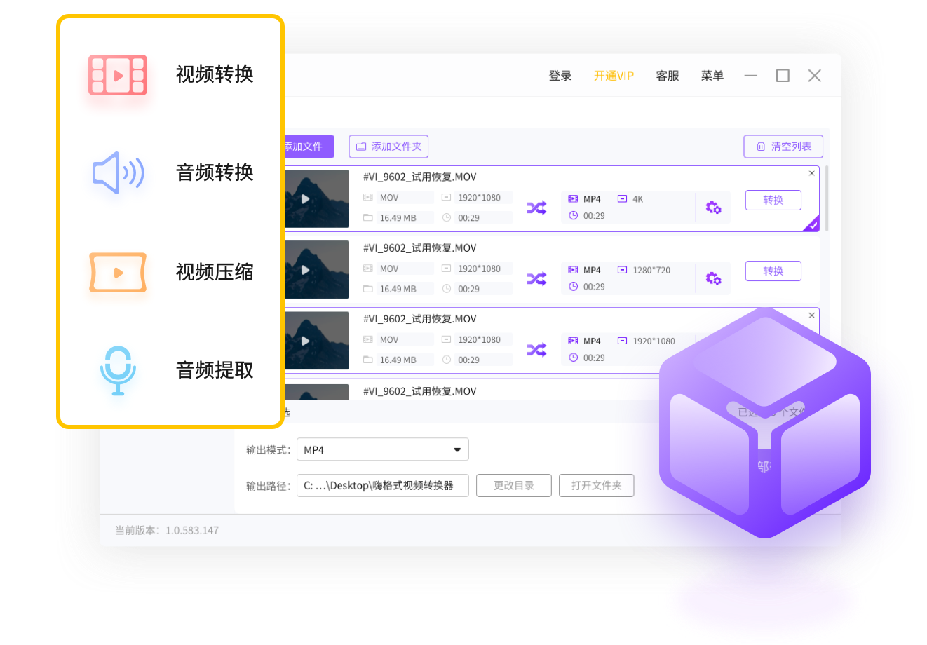 常見(jiàn)音視頻格式高清轉(zhuǎn)換、視頻壓縮、音頻提取等協(xié)助辦公的好幫手