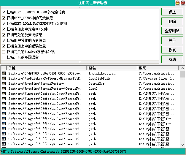 注冊表垃圾清理器最新版是一款優(yōu)秀好用的注冊表清理的輔助工具,注冊表垃圾清理器最新版專門針對電腦系統(tǒng)安裝卸載軟件后殘留的注冊表進(jìn)行強(qiáng)力清除,可以清理注冊表殘留的垃圾,也可以幫助用戶輕松清理系統(tǒng)注冊表。