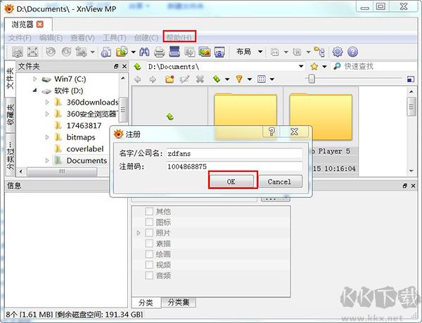 1、打開軟件,點擊幫助,注冊,彈出注冊窗口,將軟件包中的用戶名和注冊碼輸入到注冊碼界面,點擊ok。