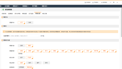 最后,建議在“預(yù)警設(shè)置”里打開“預(yù)警開關(guān)”,系統(tǒng)將會(huì)根據(jù)設(shè)置,把互聯(lián)網(wǎng)上新出現(xiàn)的相關(guān)信息第一時(shí)間通過(guò)郵件、APP、微信、WEB彈窗、短信等方式進(jìn)行告知。