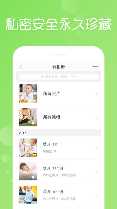 【親友共享】實(shí)時(shí)同步--出差的爸爸,外地的爺爺奶奶都實(shí)時(shí)看到寶貝的變化私密空間--每位寶寶都有唯一邀請(qǐng)碼,邀請(qǐng)才能進(jìn)入空間親友關(guān)愛--親友參與記錄寶寶的成長(zhǎng)過程,寶寶成長(zhǎng)不再孤單