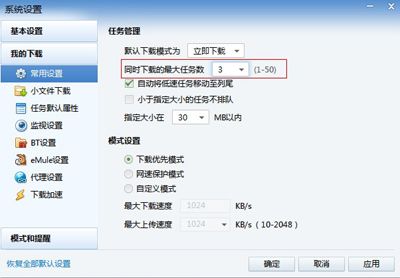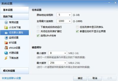 第三步、迅雷配置參數(shù)的修改,磁盤的緩存設(shè)置不要過大,過大的緩存將會(huì)占用物理內(nèi)存,也非常影響系統(tǒng)的運(yùn)行速度,因此,建議內(nèi)存512M以下的用戶設(shè)置低于4096K。線程也要全開。
