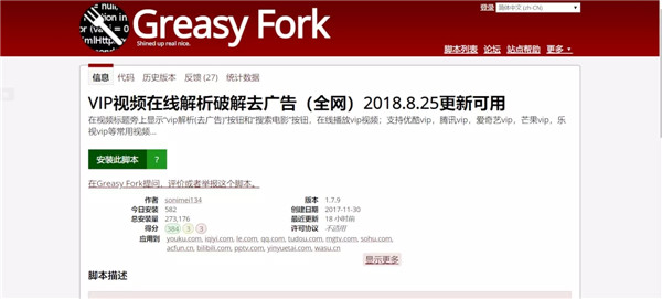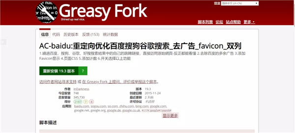 2、選擇一個(gè)腳本,進(jìn)入腳本頁面后可以看到安裝此腳本的按鈕