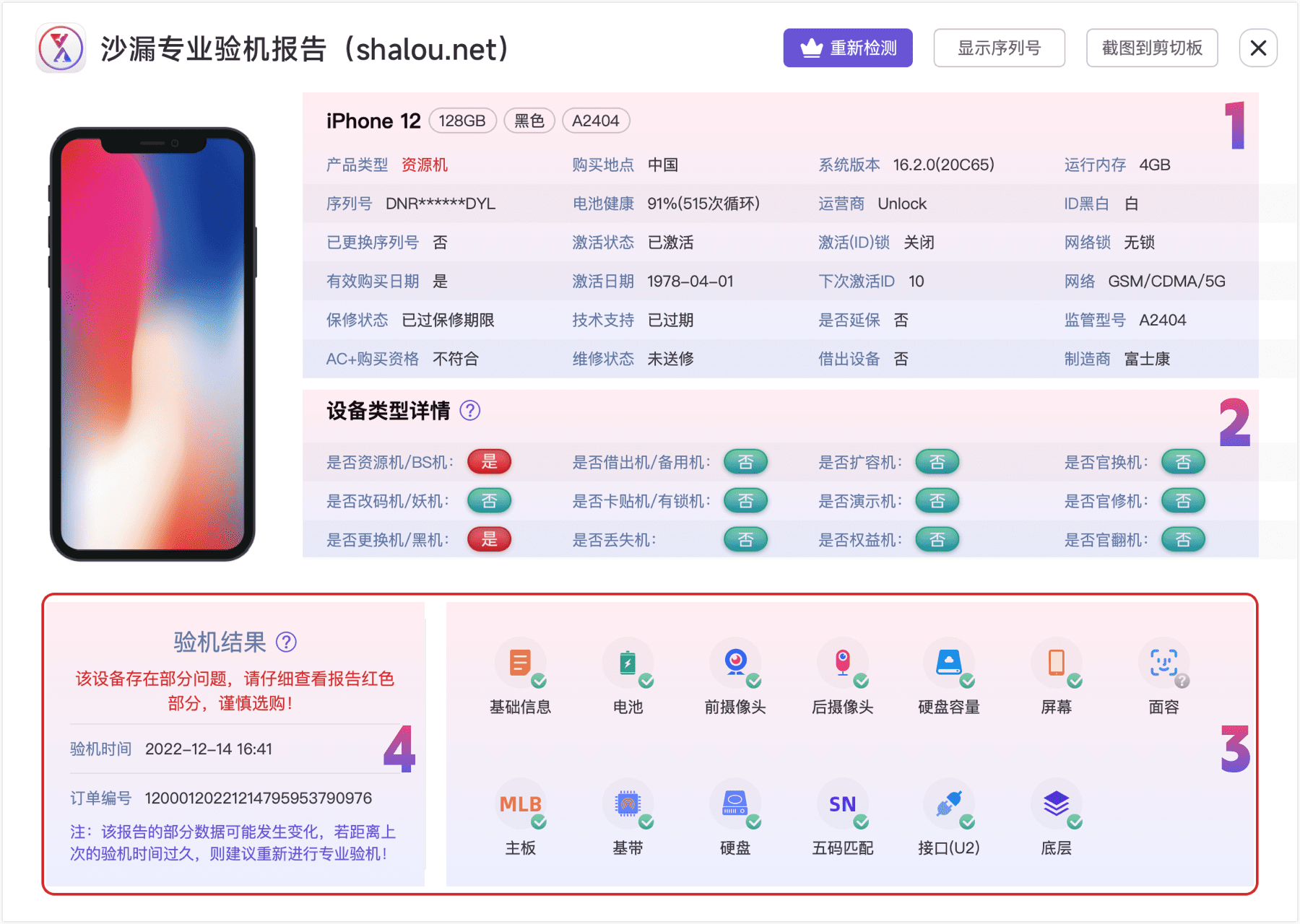 行業(yè)首創(chuàng),驗機速度快速,結(jié)果清晰明了,買了新iPhone?試試沙漏驗機吧。