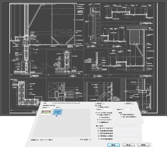 支持從PDF文件輸入幾何圖形、填充、光柵圖像和文字對象,成為CAD圖形數(shù)據(jù),有效提高圖紙利用率。