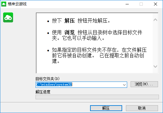 一、在開(kāi)心電玩下載該軟件安裝包,雙擊進(jìn)入如下界面,默認(rèn)位置為c盤(pán),用戶可以自行修改,確認(rèn)無(wú)誤之后,點(diǎn)擊解壓即可