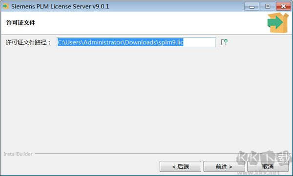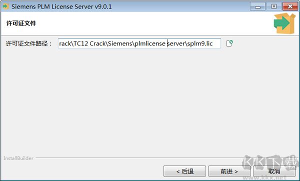 5、選擇第一步修改的許可證文件“splm9.lic”,點前進