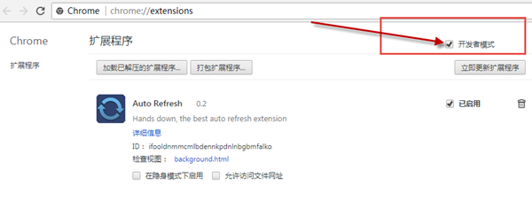 點擊谷歌瀏覽器右上角的更多工具,擴展程序里面開啟“開發(fā)者模式”即可。