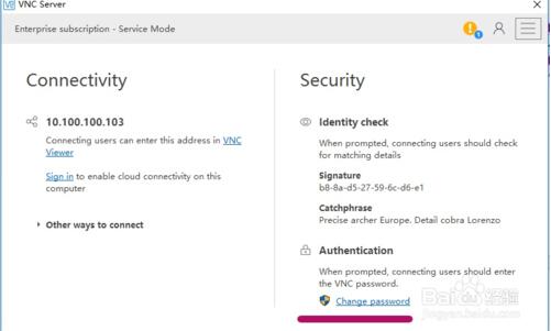 12、然后進入主界面,可以看到左邊 Connectivity 板塊為連接相關(guān)的信息,顯示目前的服務(wù)器端IP為10.100.100.103;右邊為 Security 為安全相關(guān)信息,上邊 Identity check 為一些身份檢查等信息,下方 Authentication 為認證信息。